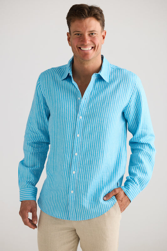 Oxford Shirt - Aqua Stripe
