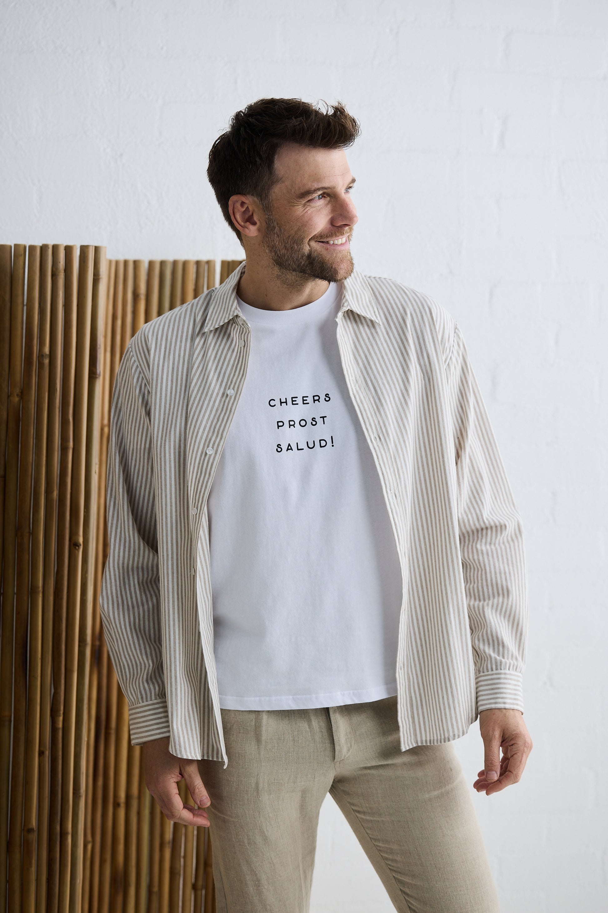 Experience the luxury of soft cotton jersey with the comfortable and relaxed fit of our Cheers Tee. Featuring a round neckline, this short sleeve tee is perfect for any occasion.