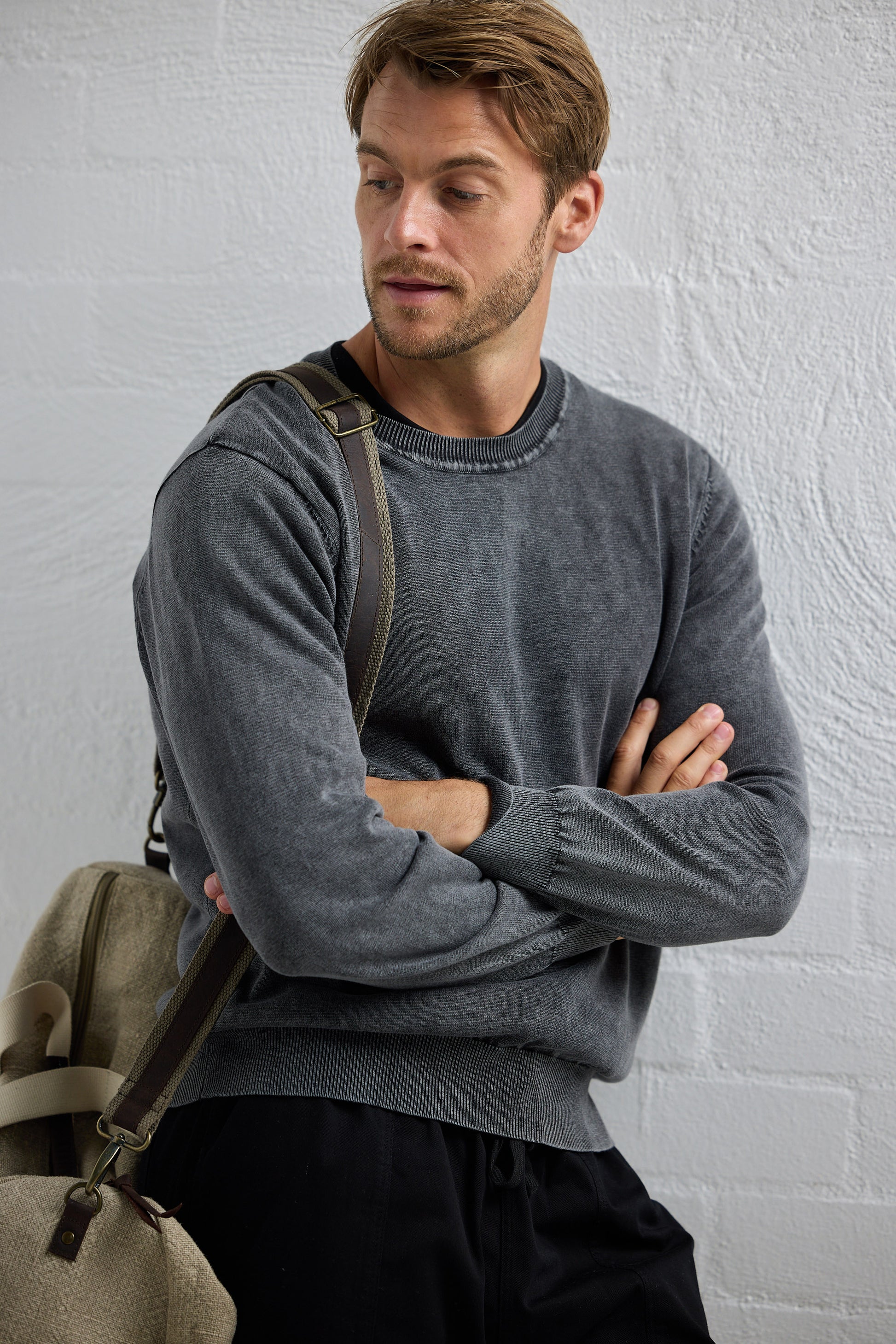 Experience the ultimate comfort and style with River Knit. This top features a round neckline, a washed look, and full length sleeves, complemented by ribbed detailing on the neckline, cuffs, and hem. Feel the softness and elegance of this timeless piece.